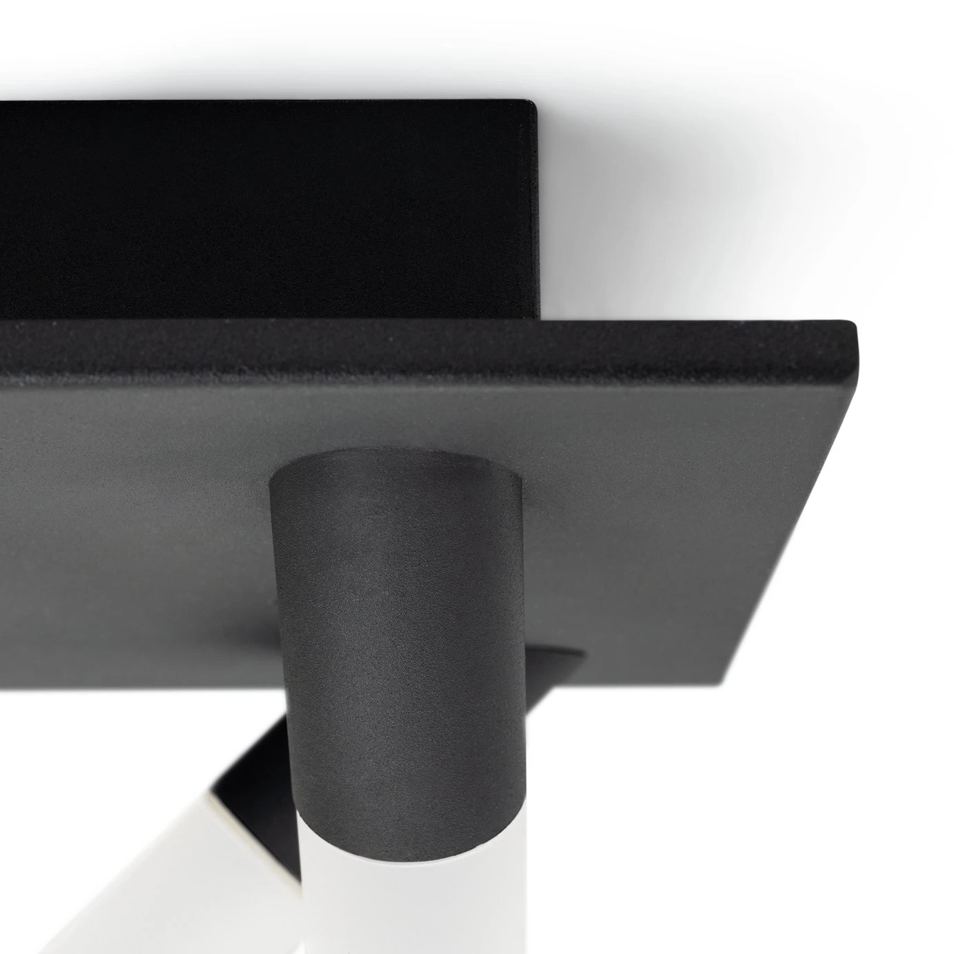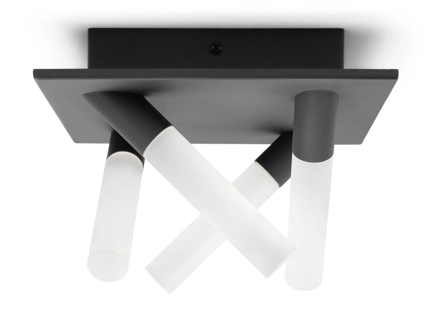 Ultra mod architectural style. This wand-based ceiling light adds a bit of modern magic to a room. Designed in black metal and acrylic for both form and function, its four white shades offer maximum surface area. Perfect to spread diffused light across the room.